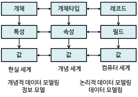 현실 세계에 존재하는 데이터를 컴퓨터 세계의 데이터베이스로 옮기는 변환 과정