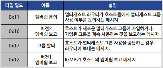 - 현재 IGMP 버전은 3까지 정의되어 있고 가장 널리 사용되고 있는 IGMP는 버전 2