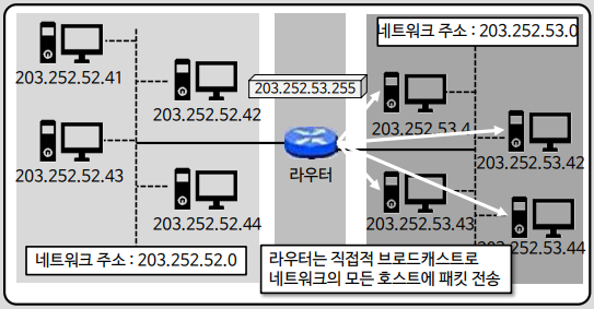- 라우터 네트워크의 모든 호스트로 패킷을 보낼 때 사용