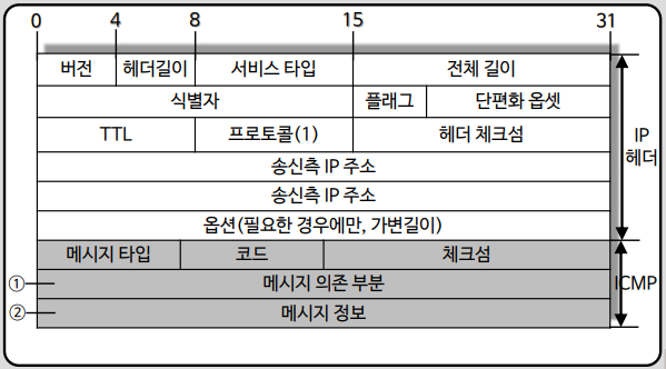 - 메시지 타입 필드 : ICMP 메시지 종류를 기술