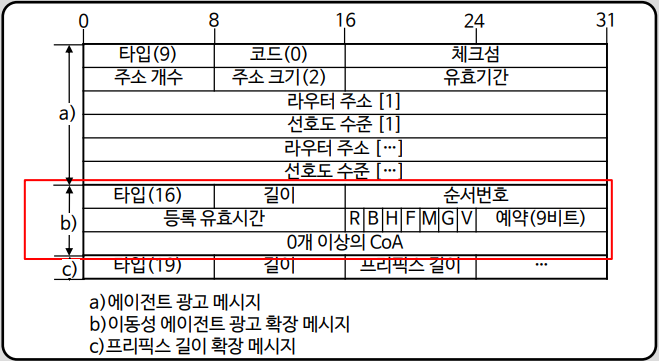 - 이동성 에이전트 광고 확장 메시지(Mobility Agent Advertisement Extension Message) 포함