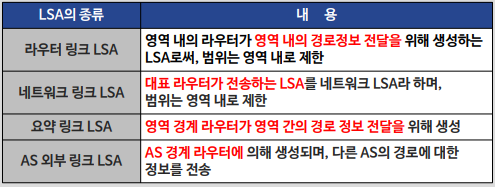 OSPF는 계층적으로 동작하기 때문에 LSA 역시 계층적으로 이루어짐