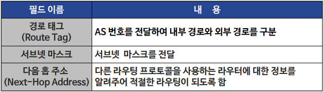 - 외부 라우팅의 특수성을 반영하기 위하여 패스 벡터 알고리즘(Path Vector Algorithm)을 사용