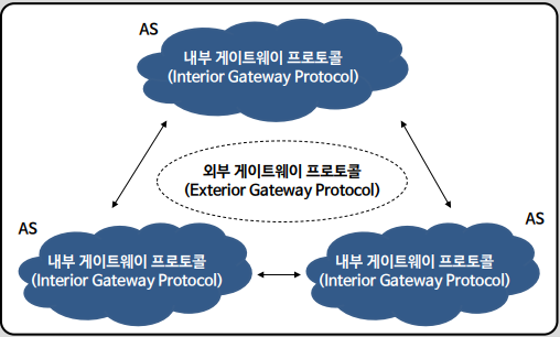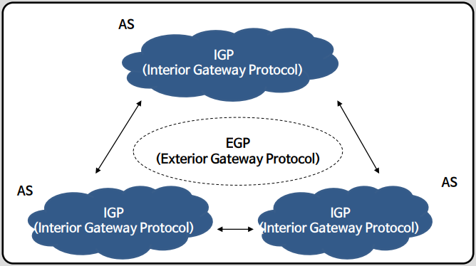 - AS 내부에는 BGP 라우터가 여러 개 있을 수 있으며 이러한 라우터들을 통해 AS간의 연결을 제공하는 횡단(transit) AS를 제공할 수 있음