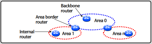 - 영역 간의 정보 전달은 오직 영역 경계 라우터(Area Border Router)를 통 해서만 수행됨