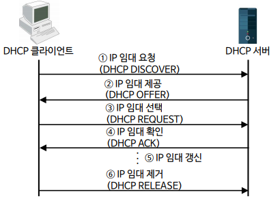 - 동적할당 : 일정기간 IP 주소를 클라이언트에 할당하고 임대기간이 끝나면 다른 클라이언트에게 다시 할당