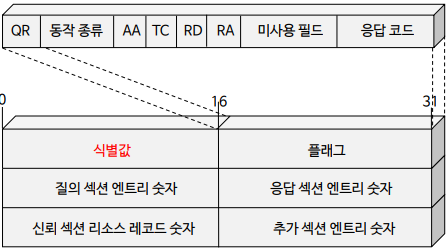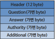 - DNS 네임 분석 트랜잭션은 UDP를 사용하며 서버는 포트번호 53, 클라이언트는 임시 포트번호를 사용