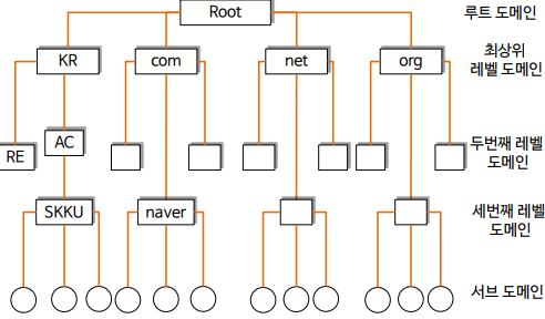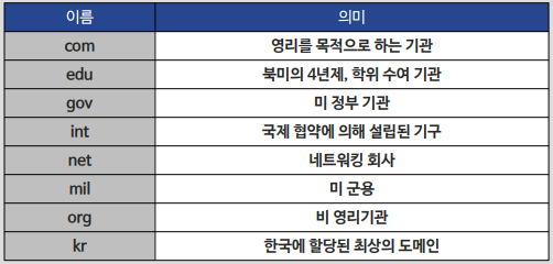 - DNS 이름에서 가장 우측에 표시되는 단어는 도메인 트리의 최상위 도메인을 나타냄