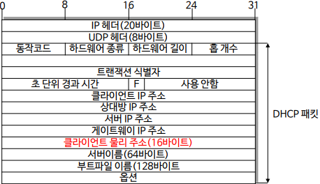 - 플래그 필드와 옵션 필드를 제외하고는 BOOTP 패킷과 유사